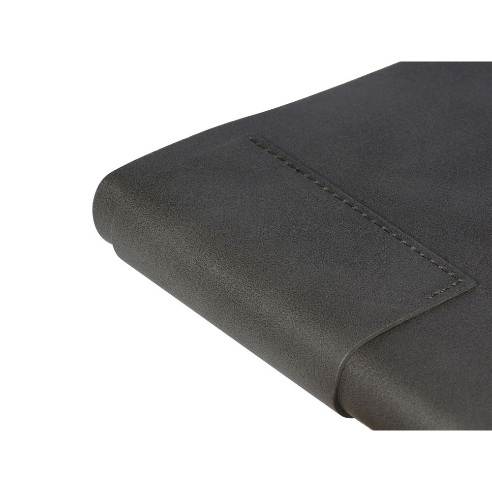Лаконичная модель в ярком исполнении: гибкая обложка серого цвета с контрастной или в цвет обложки нашивкой. Выполнен из качественной и прочной искусственной кожи, крепление внутреннего блока - книжный переплет, закладка- ляссе. Углы обложки скруглены.