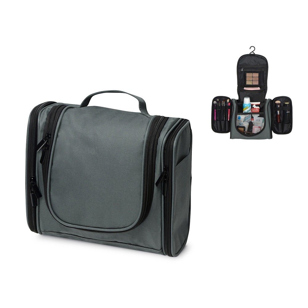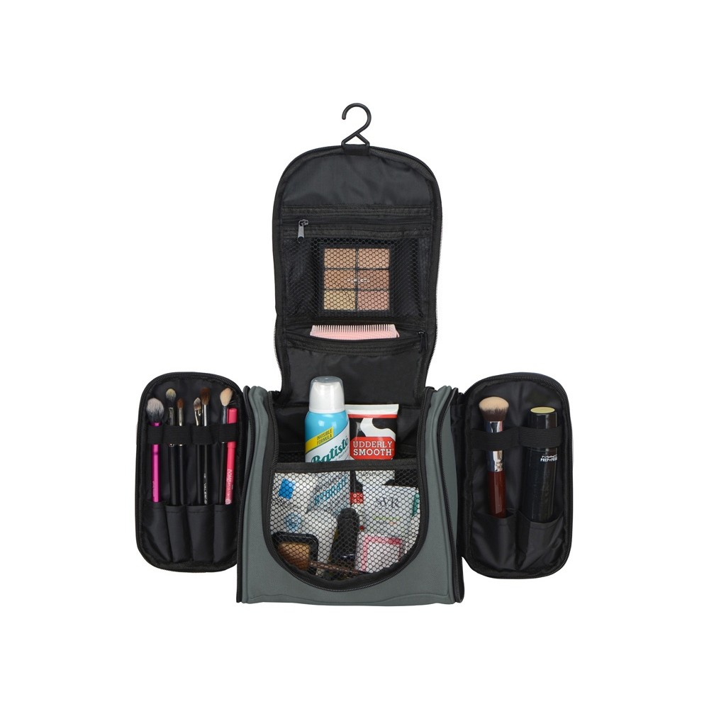 • Снабжен ручкой для удобства переноски и крючком, позволяющим подвесить несессер в ванной комнате гостиничного номера или любом другом месте