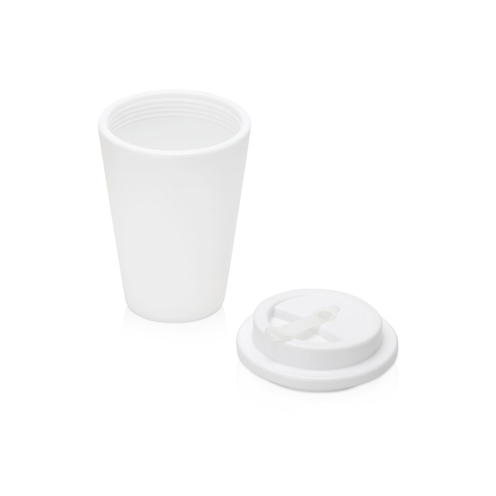 Технические характеристики Пластиковый стакан Take away с двойными стенками и крышкой с силиконовым клапаном, 350 мл, белый