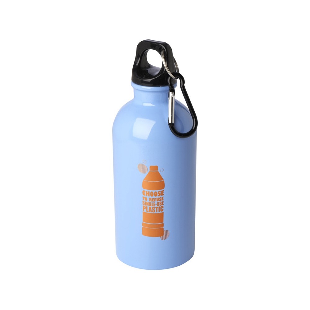 Одностенная бутылка для воды с карабином Oregon, изготовленная из нержавеющей стали, сертифицированной по стандарту RCS, объемом 400 мл - Cloud Blue