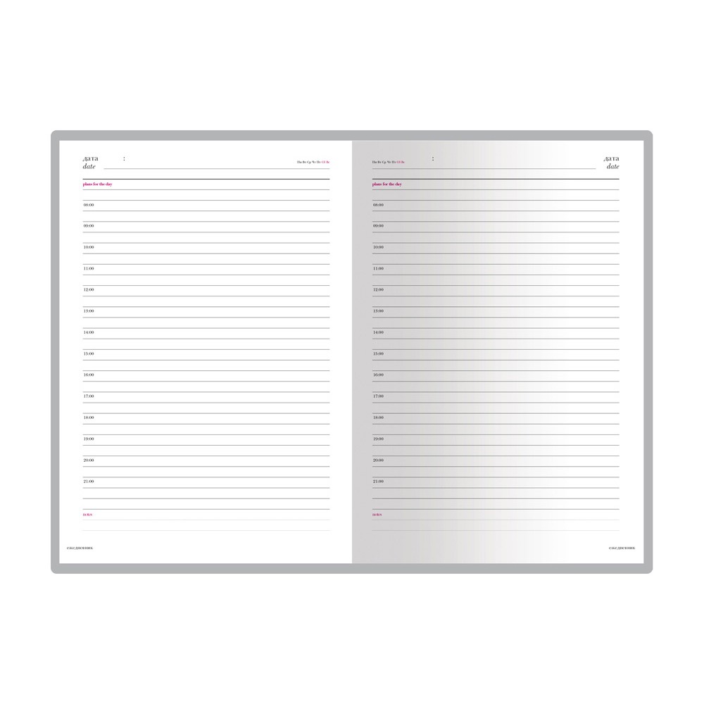 Две строчки на каждой странице отведены на ежедневное планирование. Есть почасовая разбивка страниц. Две последние строчки служат для комментариев. Строгий классический материал, прекрасная практичная альтернатива дорогостоящей натуральной коже. Идеально сочетается с тиснением фольгой.