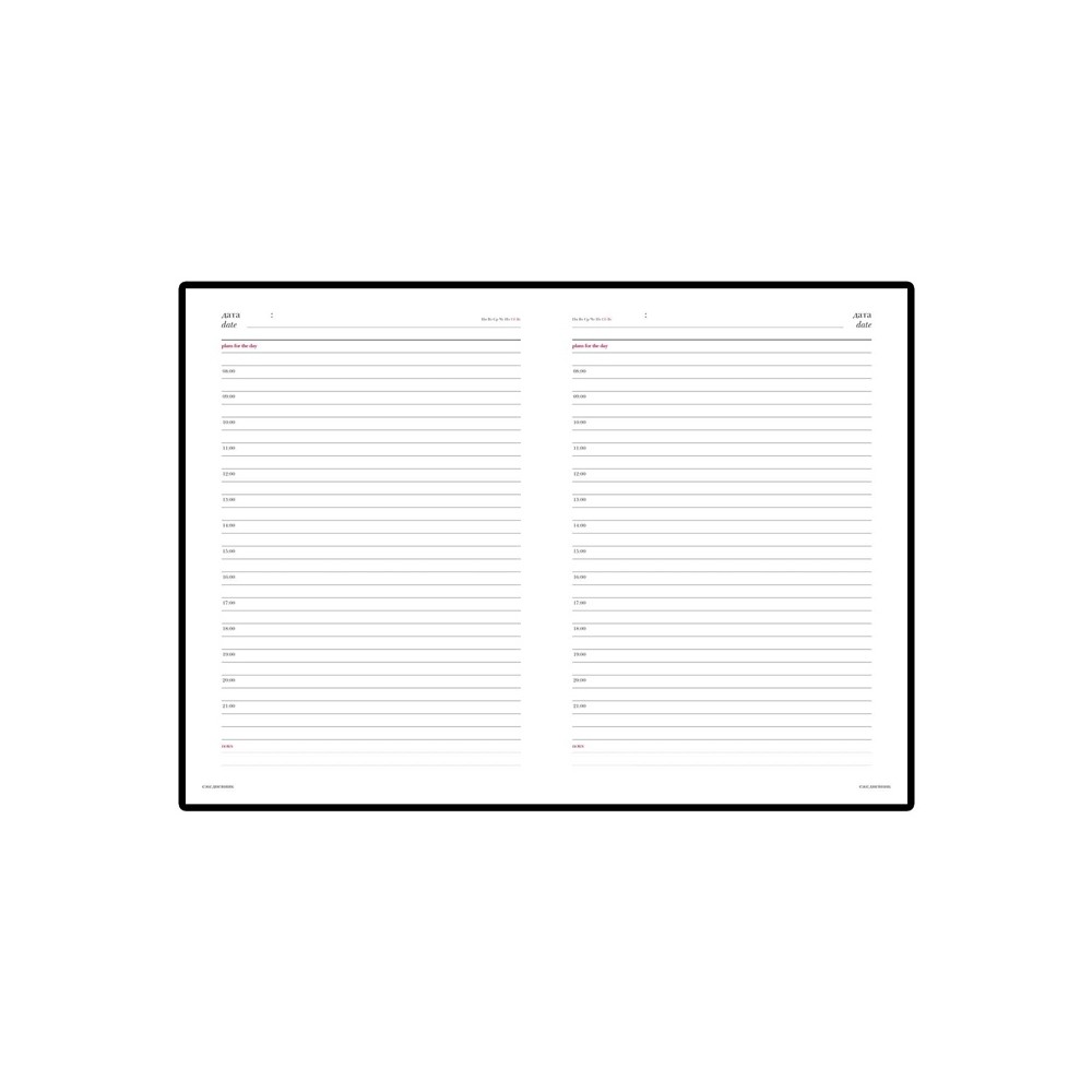 Две строчки на каждой странице отведены на ежедневное планирование. Есть почасовая разбивка страниц. Две последние строчки служат для комментариев. Строгий классический материал, прекрасная практичная альтернатива дорогостоящей натуральной коже. Идеально сочетается с тиснением фольгой.