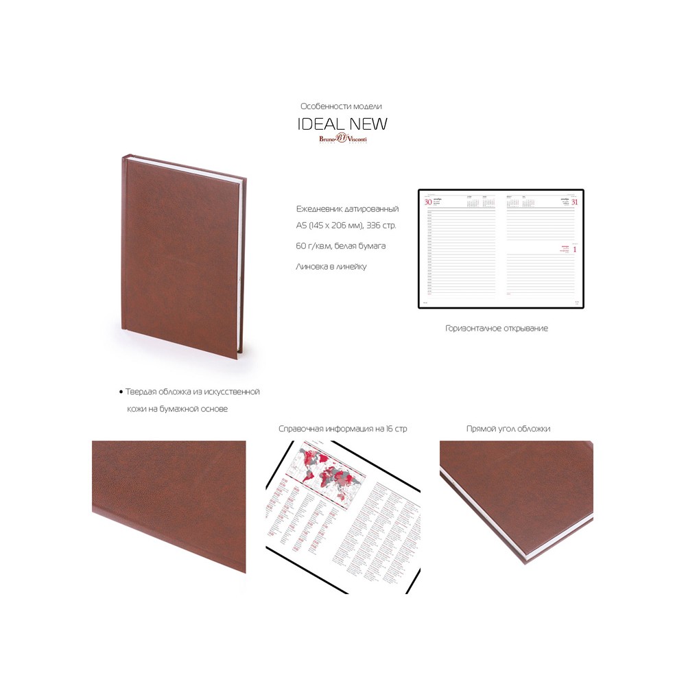 Недатированный ежедневник A5 Ideal New от бренда Альт - это качественный корпоративный подарок по выгодной цене, произведенный специально под персонализацию. Представлен в универсальном формате А5. Твердый переплет. Печать блока в 2 цвета. Обложка - итальянский переплетный материал на бумажной основе.