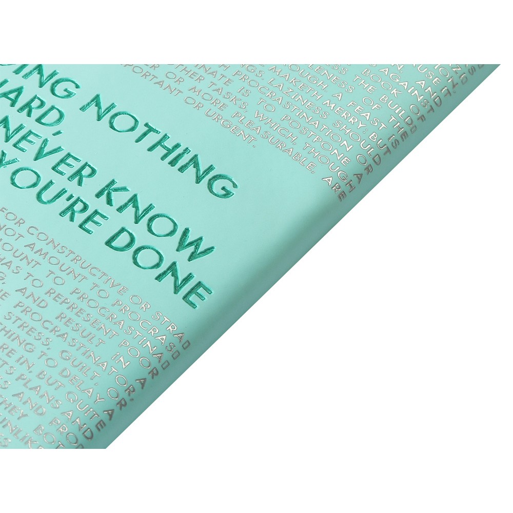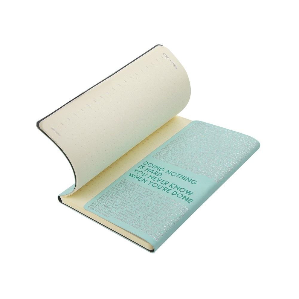 Так трудно ничего не делать, ведь совершенно непонятно, когда ты закончишь! Лаконичный слоган мотивирует к активным действиям. Планируй и завершай! Вот что кроется в элегантной надписи, выполненной золотым тиснением! А Flex обложка напоминает «Будь гибким! Великолепный недатированный ежедневник Bilbao черно-синего цвета с тиснением фольгой. Бежевая бумага 65 г/м, широкая горизонтальная фиксирующая резинка. Гибкая обложка с покрытием Soft-touch. Особенность этого ежедневника - часть обложки внахлест может использоваться как закладка. Ежедневник упакован в картонный полукороб и термопленку.