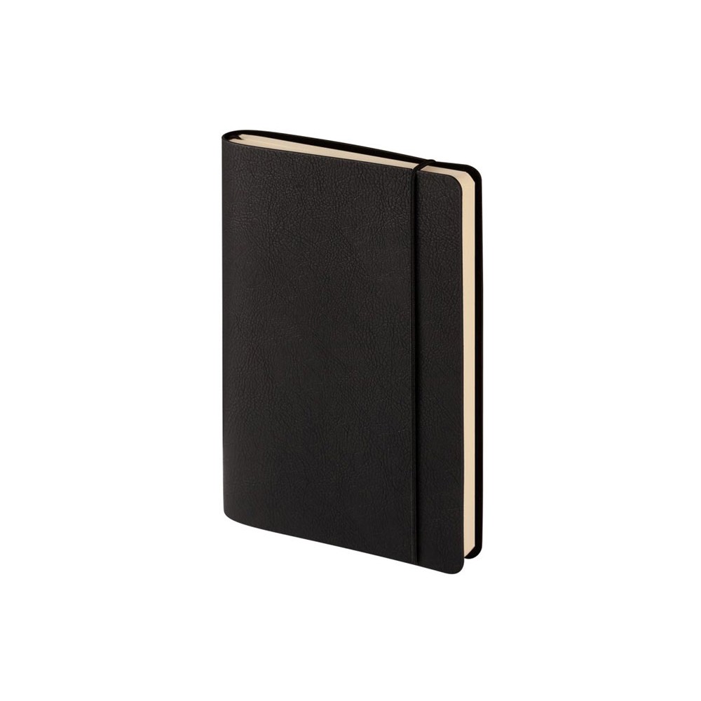 Отличительной особенностью ежедневника является горизонтальная, скрепляющая обложку и блок, тоненькая резинка. Оригинальное решение позволяет раскрывать ежедневник на 180 градусов и вести записи у самого края корешка. Для фиксации второй резинки, не позволяющей ежедневнику раскрываться, предусмотрена выемка на обложке. Обложка тонка, но фактурность придает ей элемент брутальности, а бархатистое нанесение на ее оборотной стороне- благородство и статусность. Картонный карман для визиток, записок, бумаг – функциональная деталь и приятная дополнительная опция. Бумажный блок изготовлен из бумаги бежевого цвета, плотностью 70 г/кв.м и содержит 272 страницы, 23 из которых справочная информация.