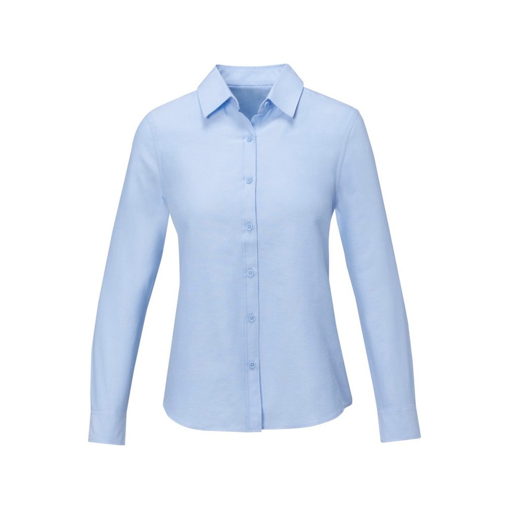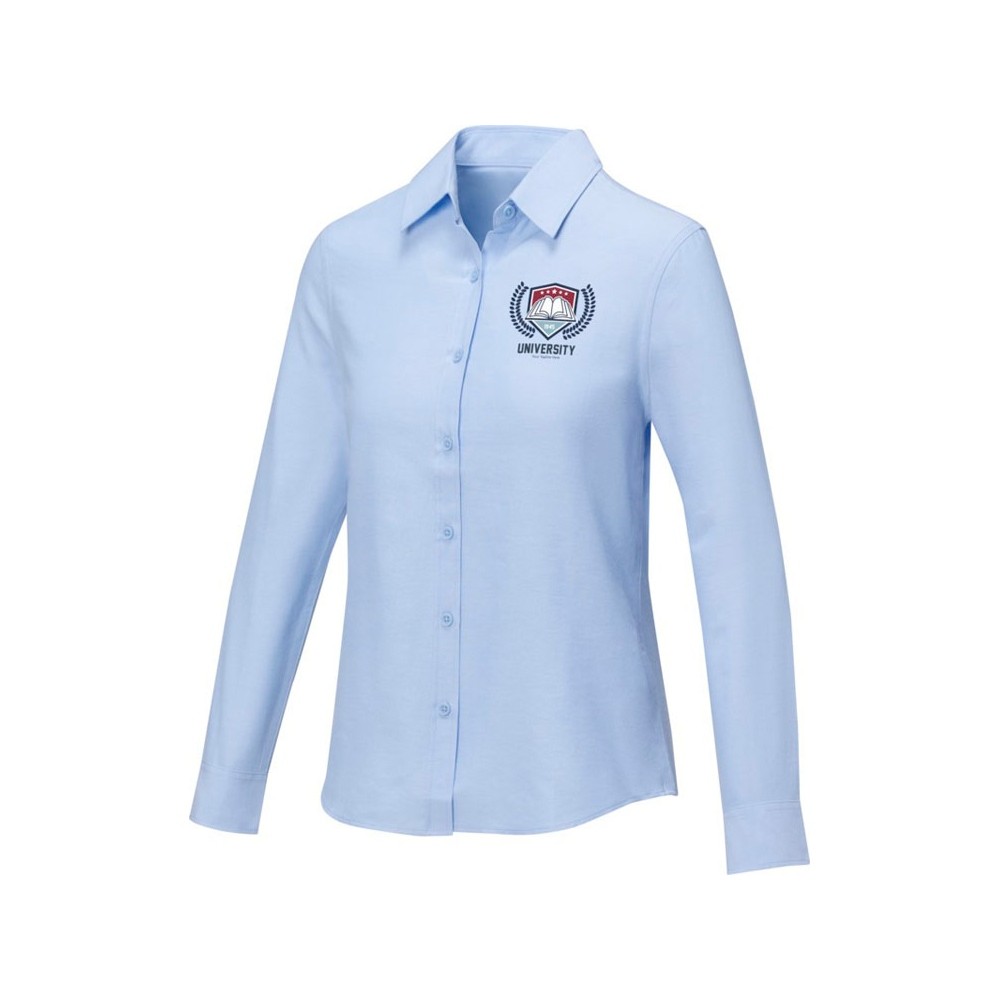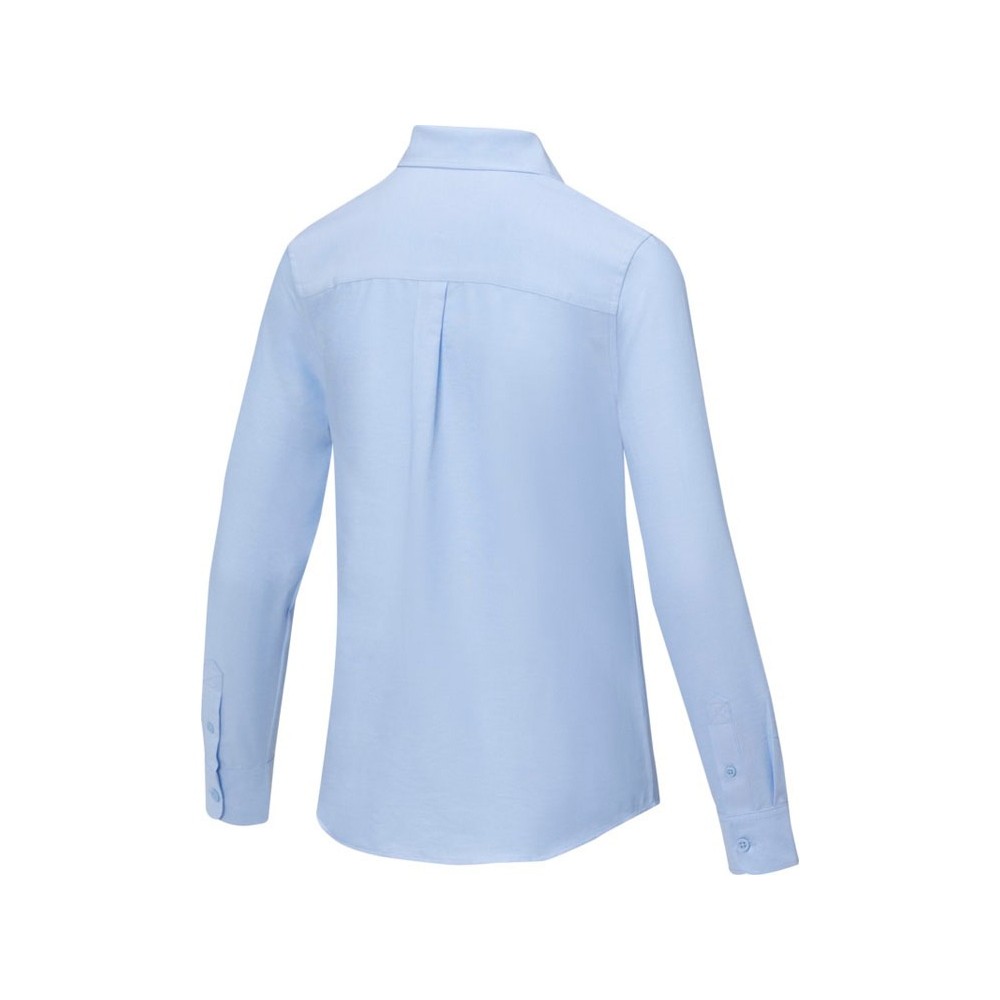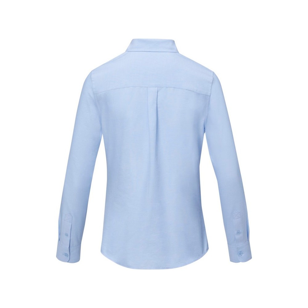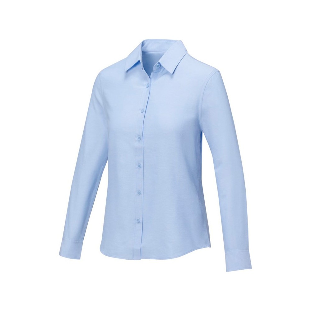 Pollux женская рубашка с длинными рукавами. Отрывной-отрезной лейбл. Регулируемая манжета рукава с одной складкой. Пуговицы в тон. Встречная складка на спинке. Ткань Оксфорд 55% хлопка, 45% полиэстера, 130гр.
