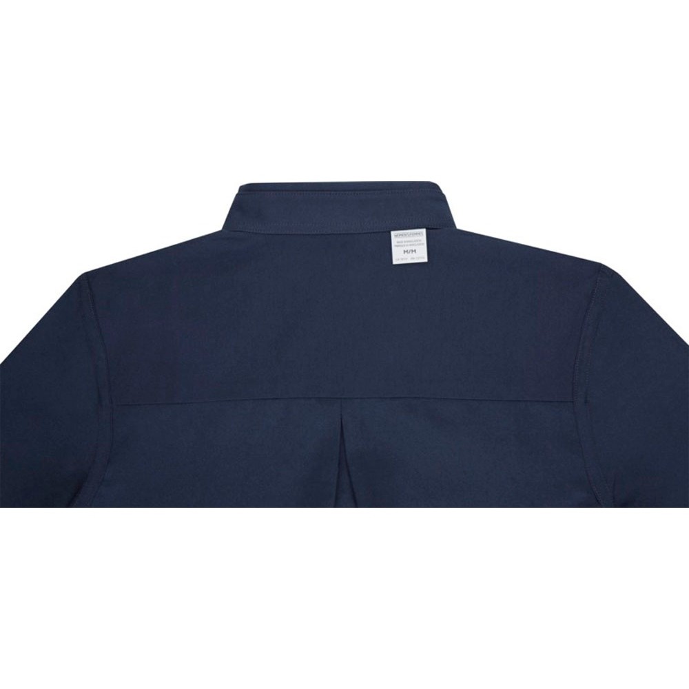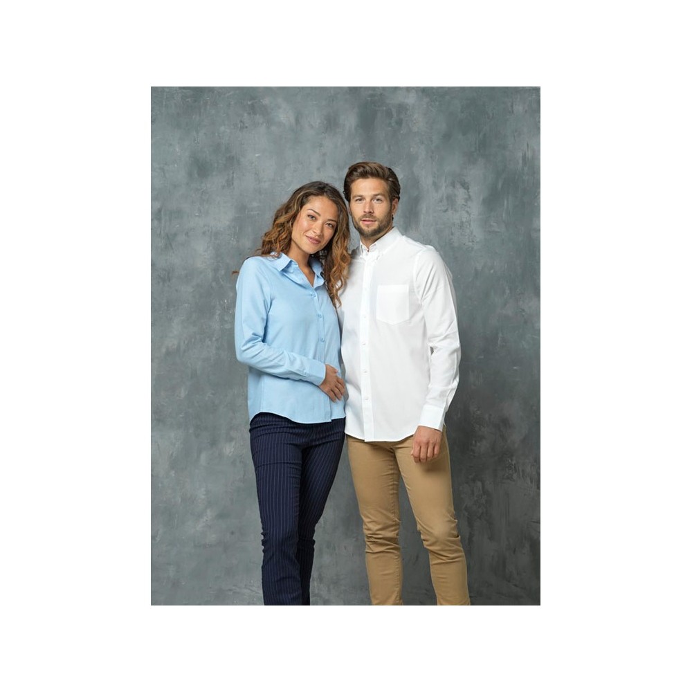 Pollux женская рубашка с длинными рукавами. Отрывной-отрезной лейбл. Регулируемая манжета рукава с одной складкой. Пуговицы в тон. Встречная складка на спинке. Ткань Оксфорд 55% хлопка, 45% полиэстера, 130гр.