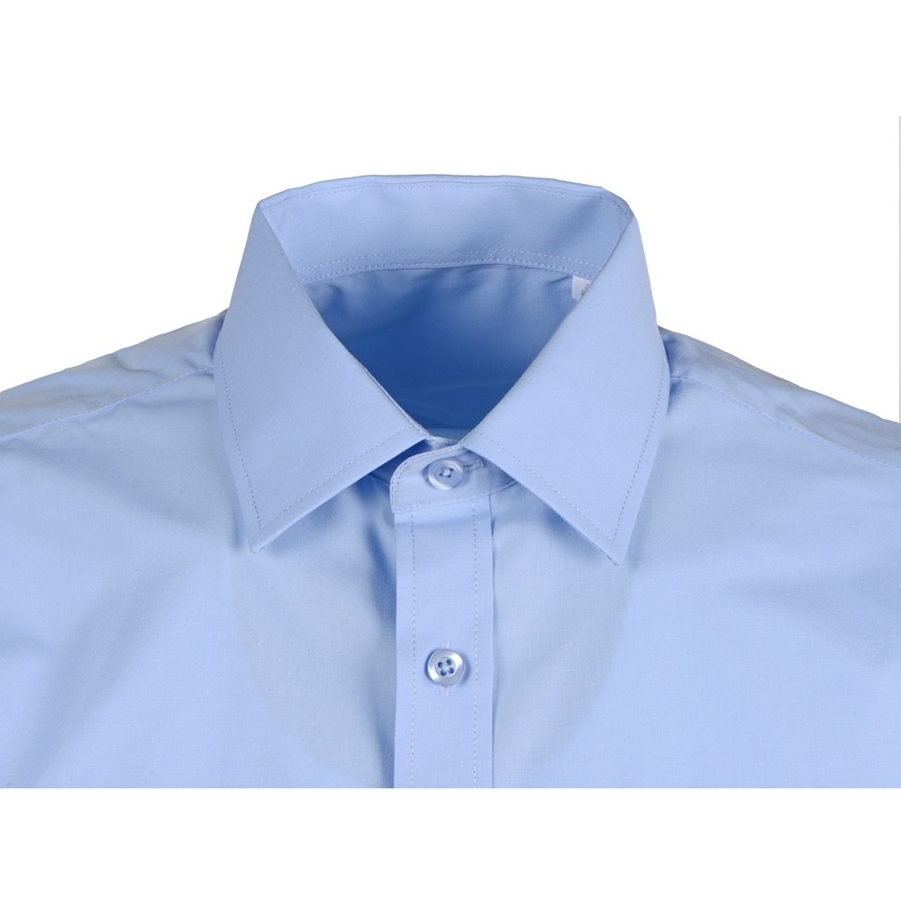 Рубашка мужская с длинным рукавом на семи пуговицах. Накладной карман на груди слева, на спинке складки из-под кокетки, манжеты с двумя пуговицами и пуговица по планке рукава.