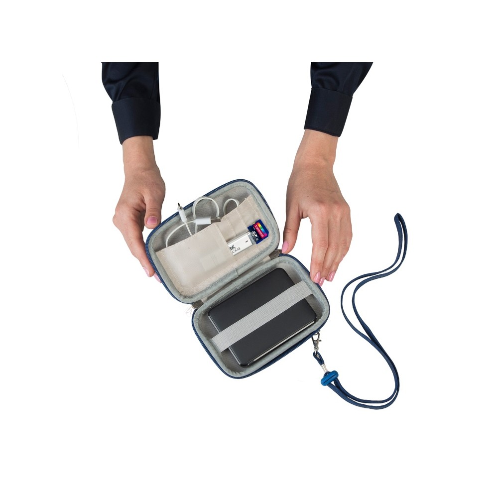 • Устройство надежно крепится внутри чехла специальной фиксирующей лентой, кроме того предусмотрены дополнительные внутренние карманы для кабеля, карт памяти и аксессуаров.