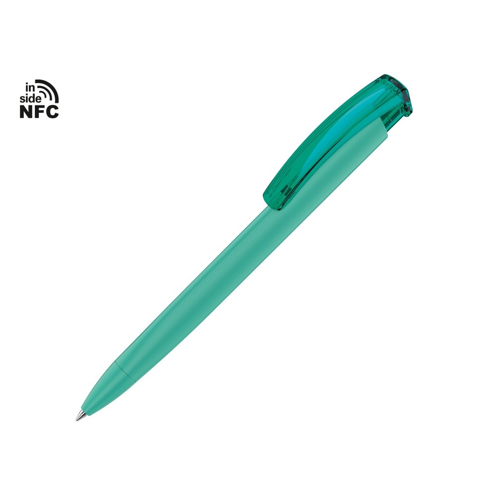 Пластиковая шариковая ручка «Trinity K transparent Gum» soft-touch» с чипом передачи информации NFC обеспечивает быстрый доступ к рекламной информации. Для передачи данных посредством технологии NFC смартфон или планшет, которые поддерживают данную технологию, необходимо поднести к запрограммированной на ручке метке NFC (метка расположена под логотипом NFC). После этого на смартфоне или планшете откроется запрограммированная ссылка на сайт, ролик или начнется загрузка другой информации (заранее загруженной в сеть интернет). Таким образом метка работает как код, при чтении которого смартфон или планшет открывает определенную программу, активирует функцию или ссылку. Можно запрограммировать на метке NFC адрес сайта, каталог и другие рекламные материалы и раздавать вместо визиток. Метка NFC активирует одно действие на смартфоне или планшете.