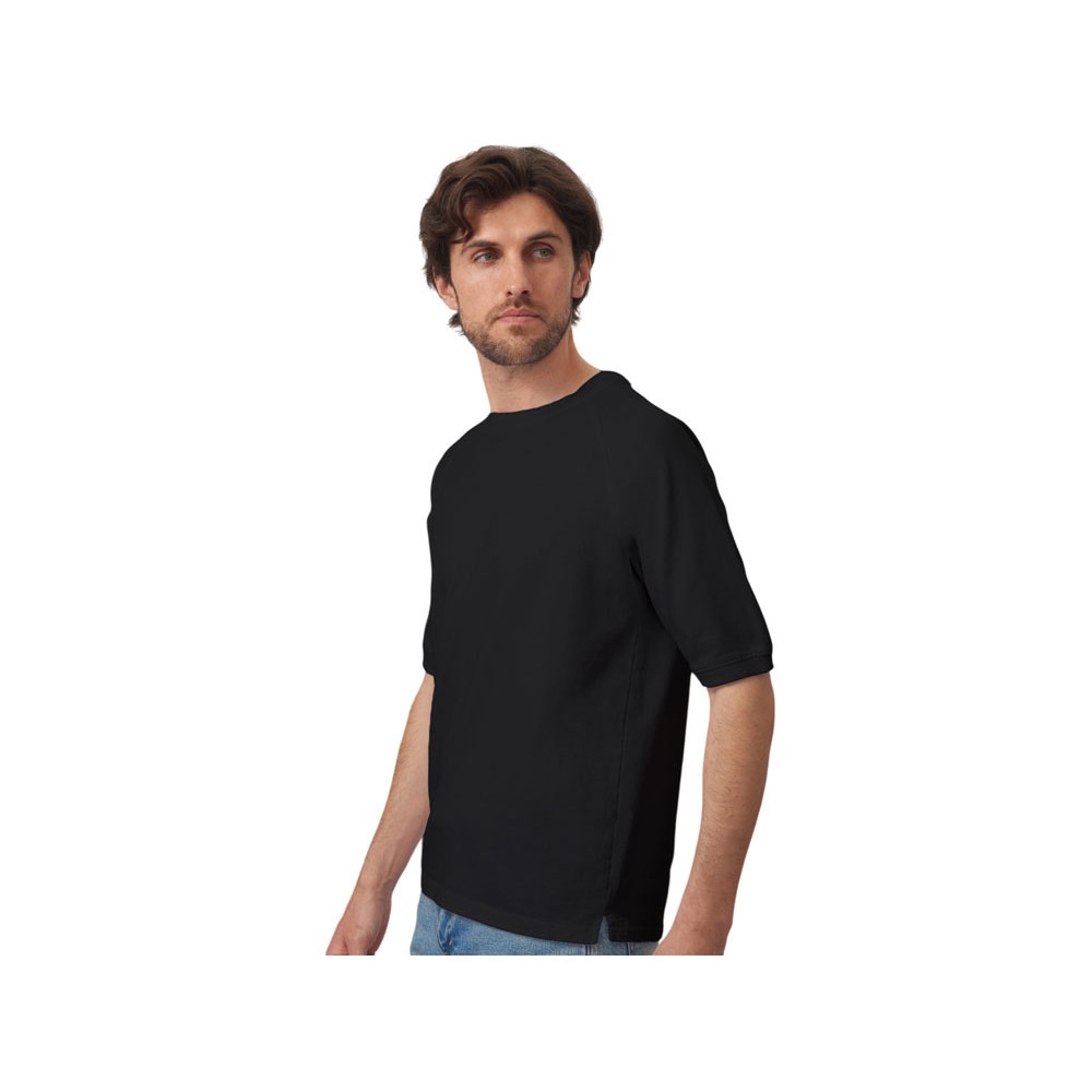 Футболка выполнена из хлопкового френч терри с петельками на изнаночной стороне. Горловина обработана рибом 2х2 и дополнительно усилена тесьмой-елочкой с внутренней стороны спинки и дополнена кокеткой по спинке для нанесения логотипа клиента. Рукав реглан продублирован рибом по низу. Разрезы в боковых швах. Гладкая поверхность полотна позволяет идеально нанести изображение. Футболка комфортного силуэта.