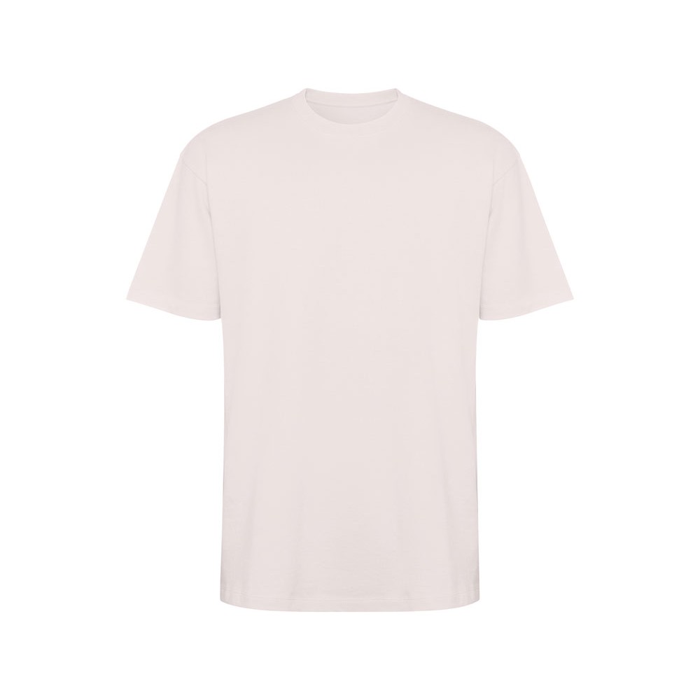 Оверсайз футболка с коротким рукавом. Круглый вырез горловины обработан рибом 2х1. Боковые швы. Широкая двойная отстрочка по рукавам и низу.