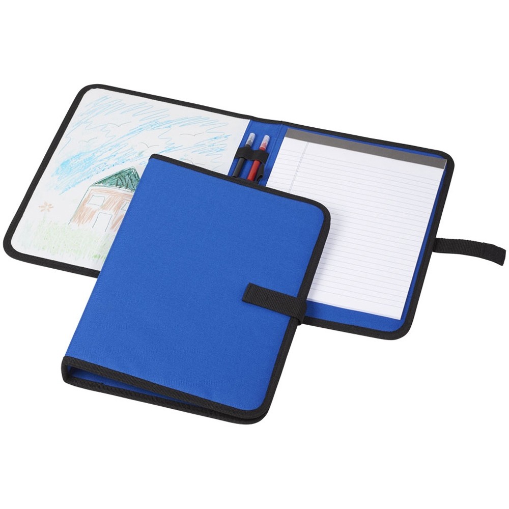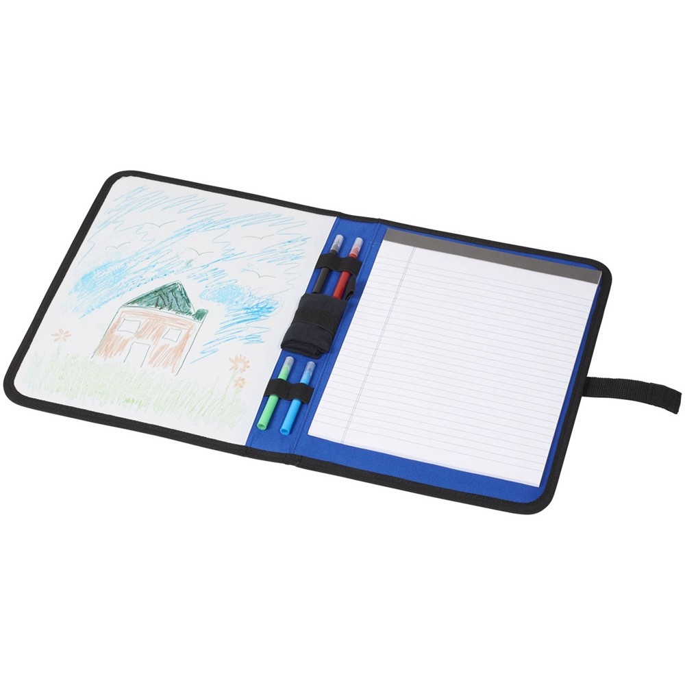 Папка Veela A4. Папка A4 с текстильной застежкой. Включает блокнот с 30 страницами линованной бумаги и доску. В комплект входят маркеры и салфетки. Полиэстер 600D.