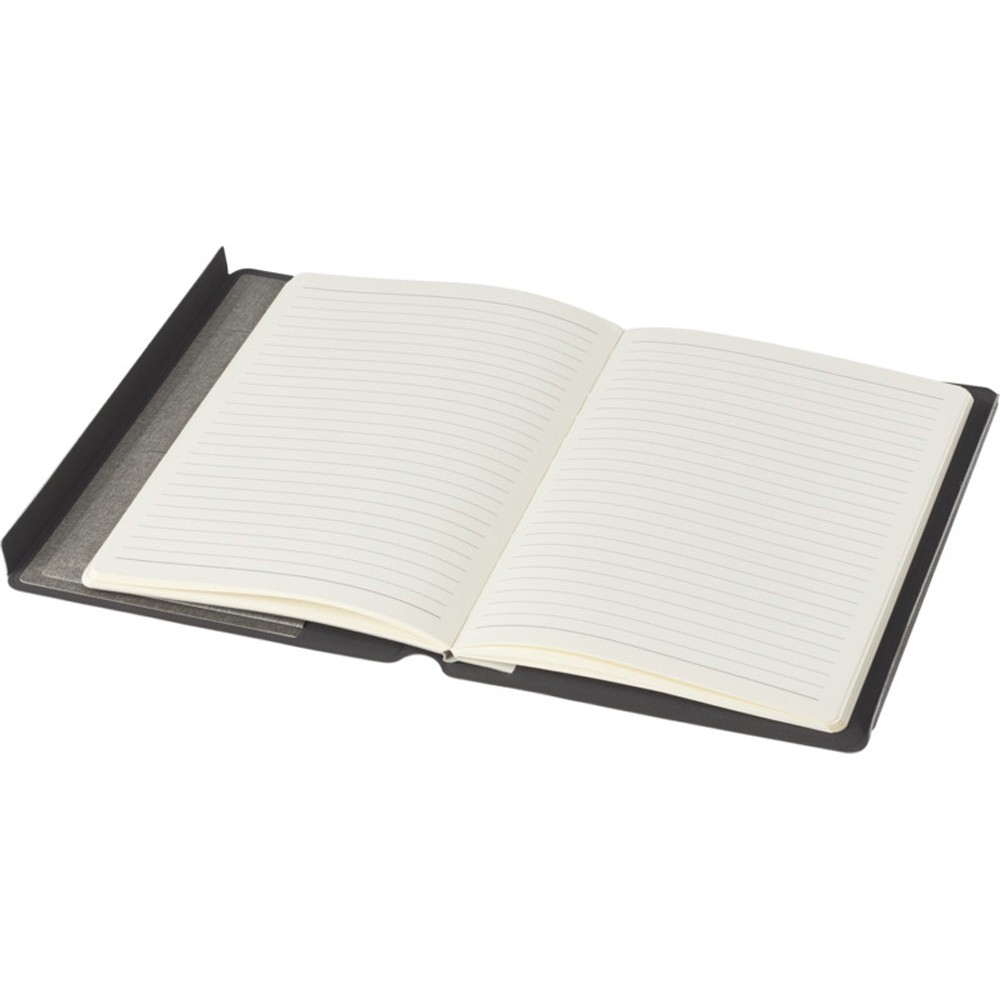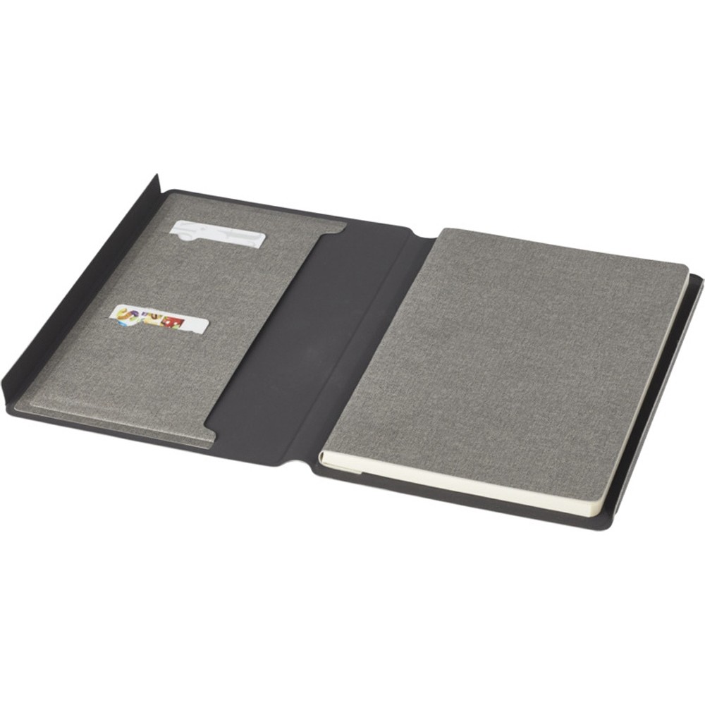 Папка-органайзер Notu, сертифицированная RCS, частично изготовлена из переработанного полиэстера, бывшего в употреблении, что делает данную папку-органайзер более экологичным выбором, поскольку помогает сократить использование первичного сырья. Имеет магнитную застежку, карман-гармошку и 64 листа в линейку кремового цвета из переработанной бумаги плотностью 80 г/м² из экологически чистых источников. FSC certified paper. FSC Mix Credit P7 CU-COC-877277.