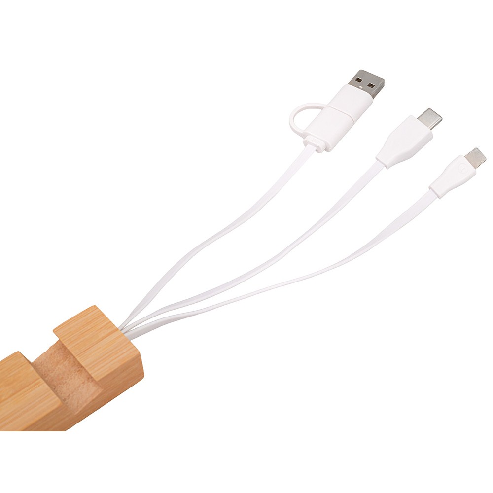 Корпус кабеля выполнен из натурального бамбука — экологически чистого и прочного материала. Деревянная подставка не только защищает кабель от перегибов, но и служит удобной опорой для телефона при видеозвонках, прослушивании музыки или просмотре видео.