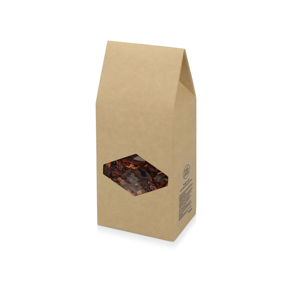 Фруктовый чай с ярким запоминающимся ароматом. В составе чая: гибискус, яблоко, изюм, плоды рожкового дерева и шиповник. Отличный подарок, как серьёзному бизнесмену, так и легкомысленной девушке. Чай упакован в крафт-коробку на которую, по желанию клиента можно нанести персонализированную информацию.