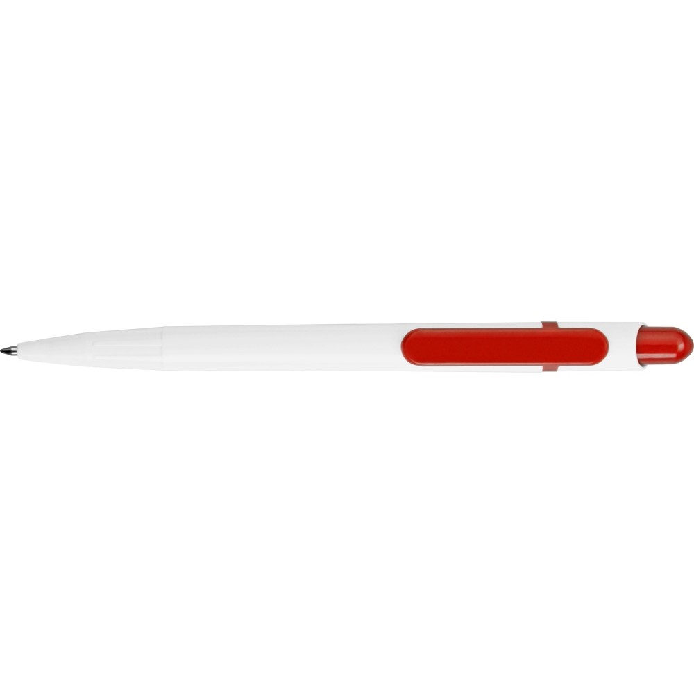Шариковая ручка Этюд – прекрасный выбор промо-сувенира для презентаций и конференций. Белый пластиковый корпус с цветной вставкой и широким клипом создает большие возможности для персонализации.