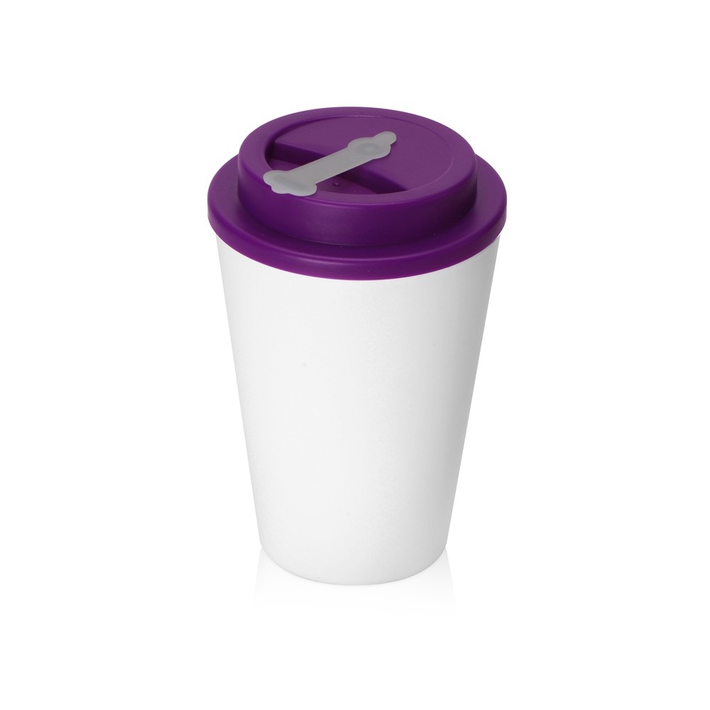 Пластиковый стакан Take away с двойными стенками и крышкой с силиконовым клапаном, 350 мл, белый/фиолетовый