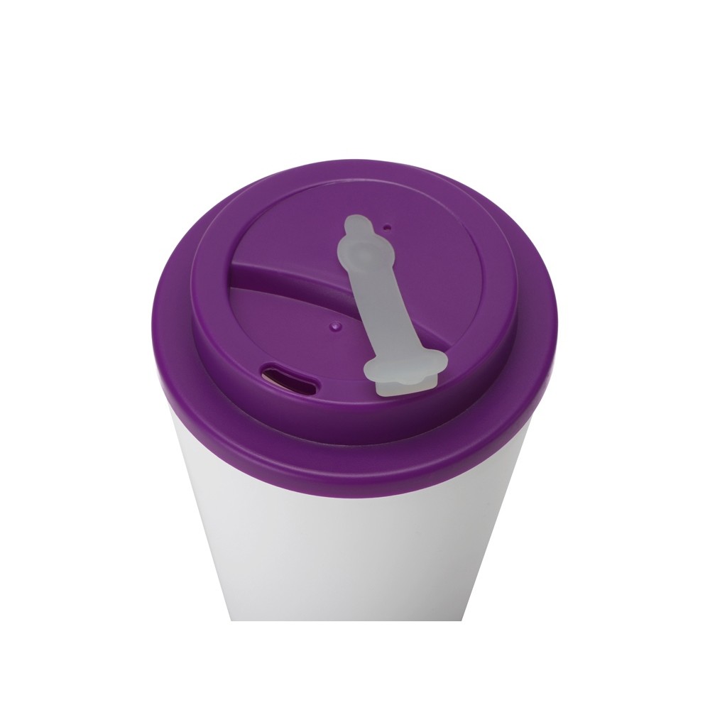 Технические характеристики Пластиковый стакан Take away с двойными стенками и крышкой с силиконовым клапаном, 350 мл, белый/фиолетовый