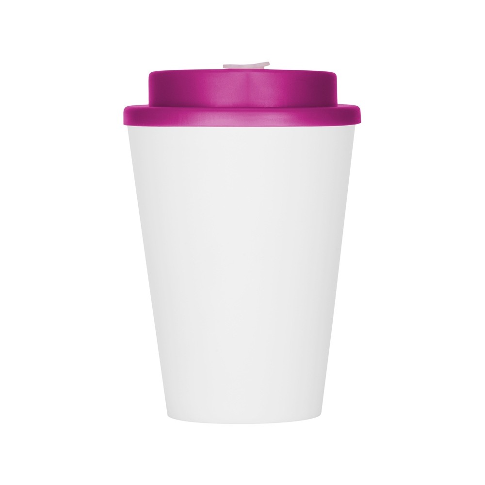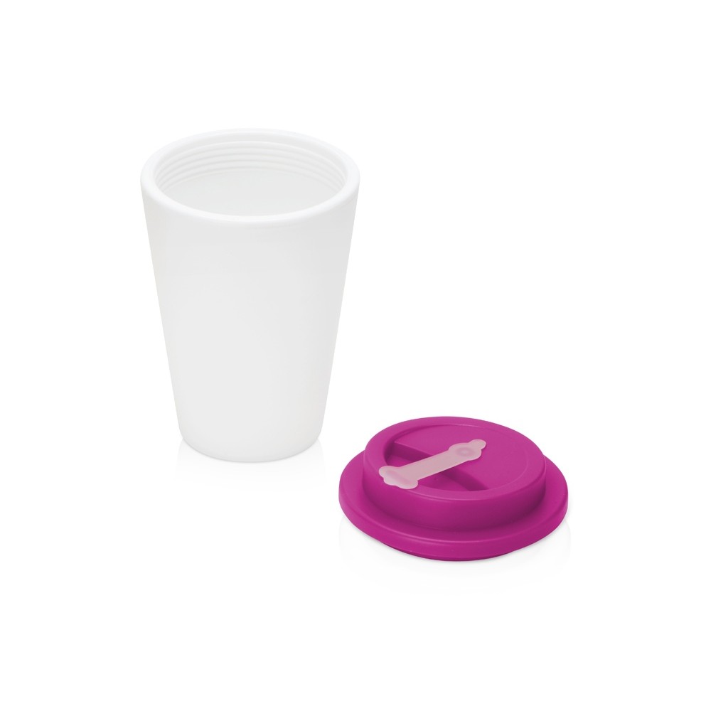 Технические характеристики Пластиковый стакан Take away с двойными стенками и крышкой с силиконовым клапаном, 350 мл, белый/фуксия
