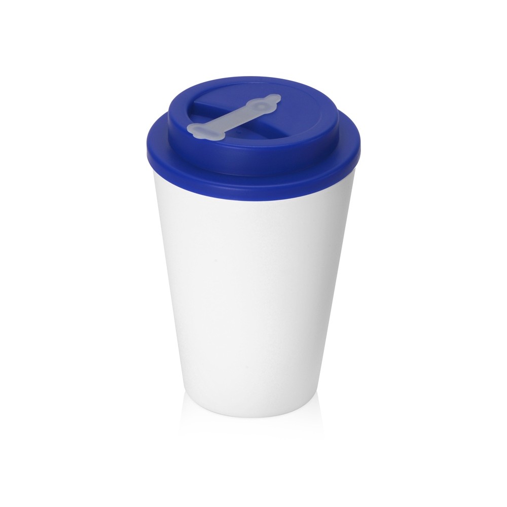 Пластиковый стакан Take away с двойными стенками и крышкой с силиконовым клапаном, 350 мл, белый/синий