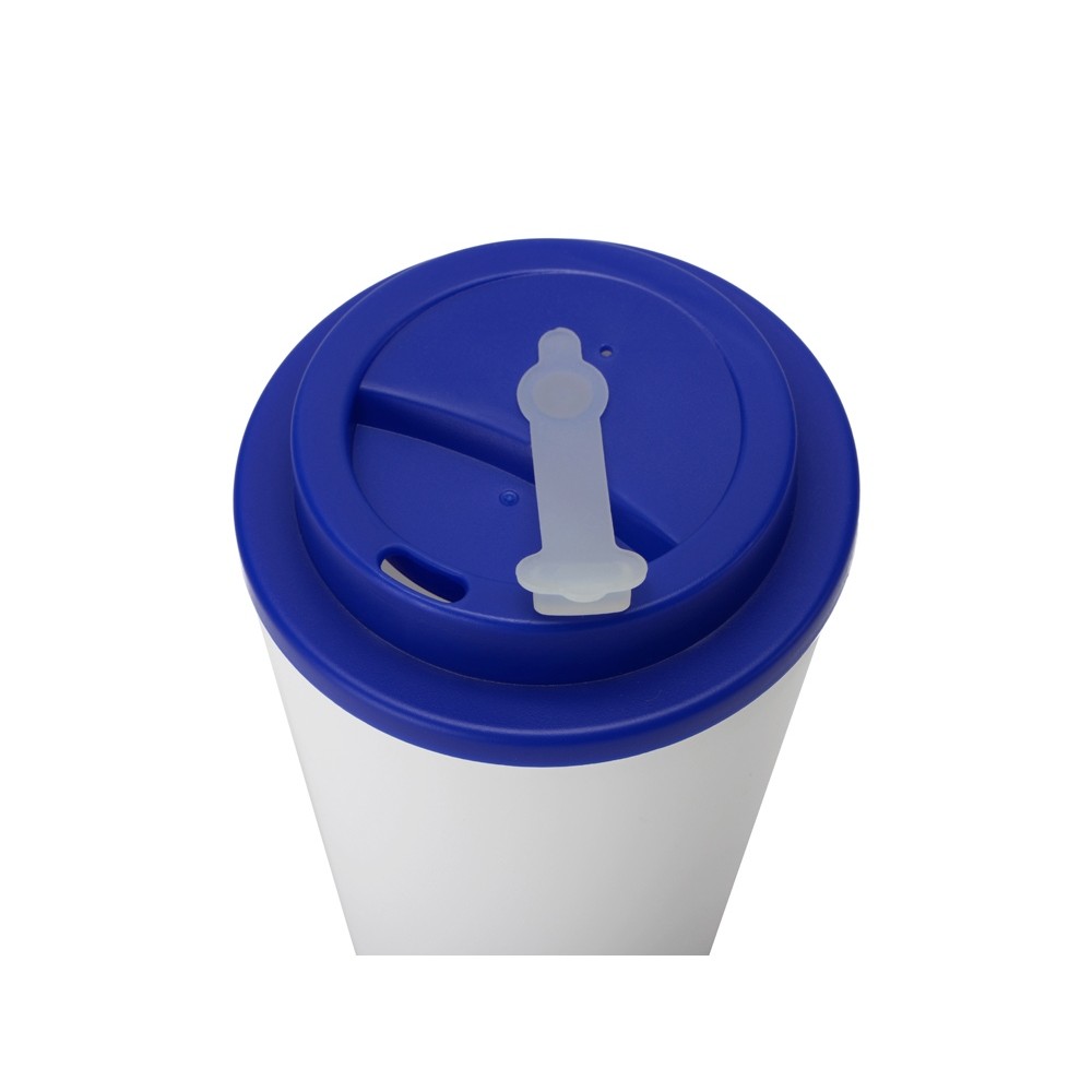 • Пластиковый стакан Take away с двойными стенками и крышкой с силиконовым клапаном, 350 мл, белый/синий