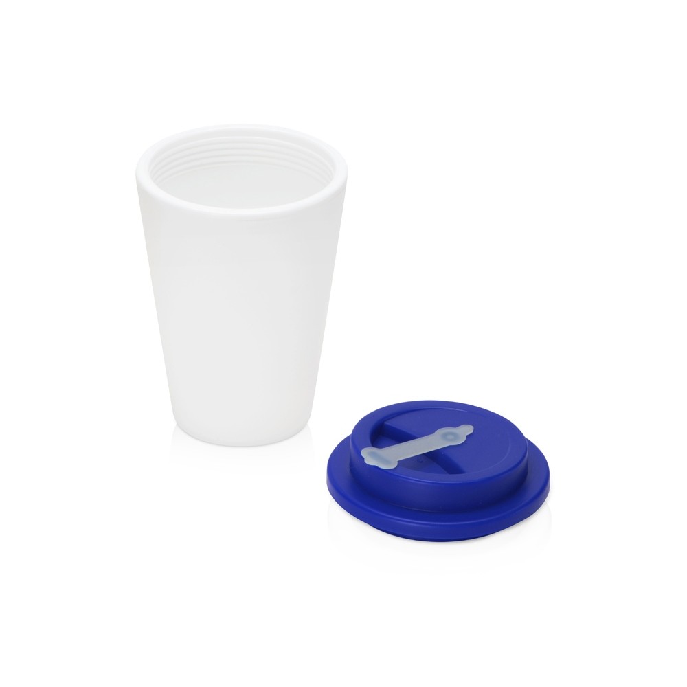 Пластиковый стакан Take away с двойными стенками и крышкой с силиконовым клапаном, 350 мл, белый/темно-синий