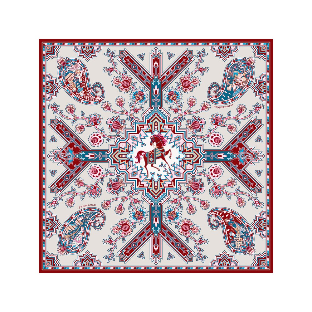 Дизайн платка "Кавказский скакун" от бренда “Русские в моде” by Nina Ruchkina навеян прекрасным и загадочным Востоком, вдохновляющим творцов всего мира.