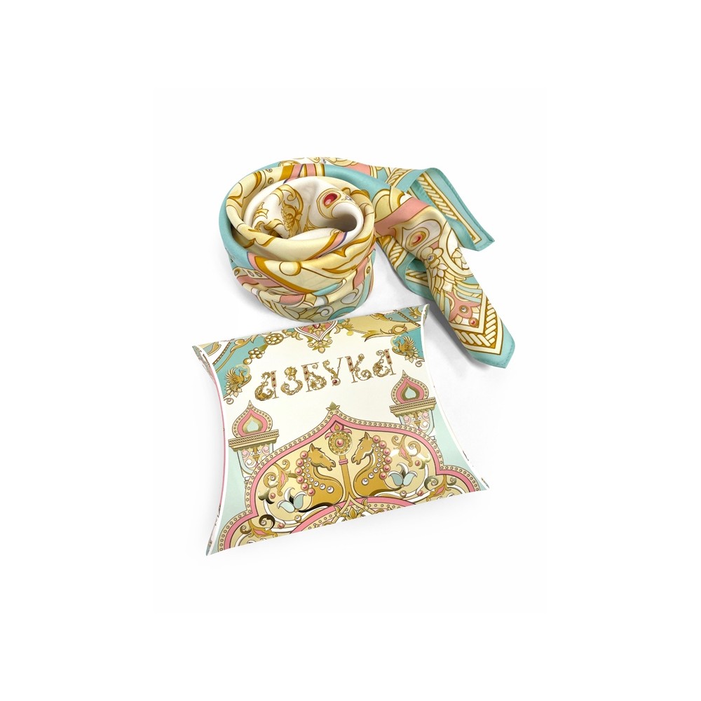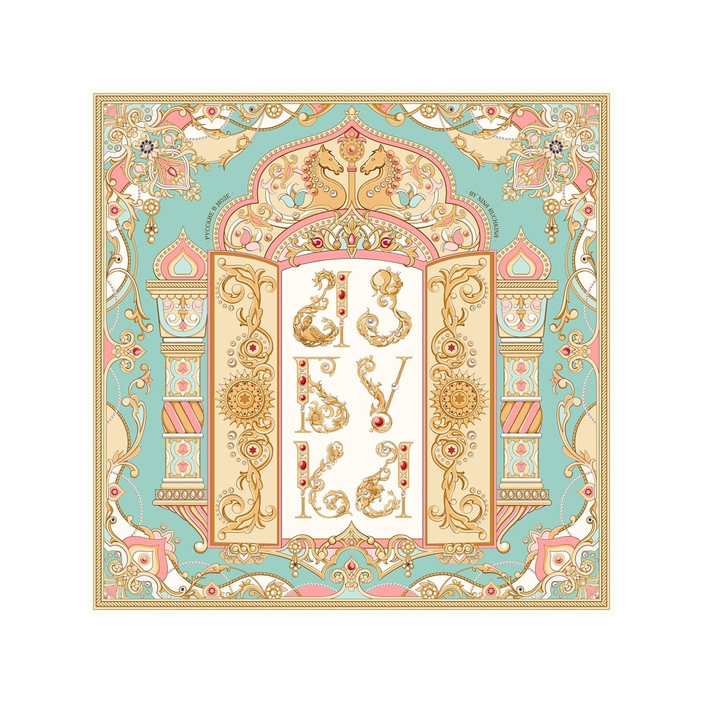 Платок “Русская Азбука” от дизайнера Нины Ручкиной - это зашифрованное послание предков, явившееся на тонкой материи. Мотивы русской архитектуры обрамляют Буквицы, щедро украшенные ажурными орнаментами.