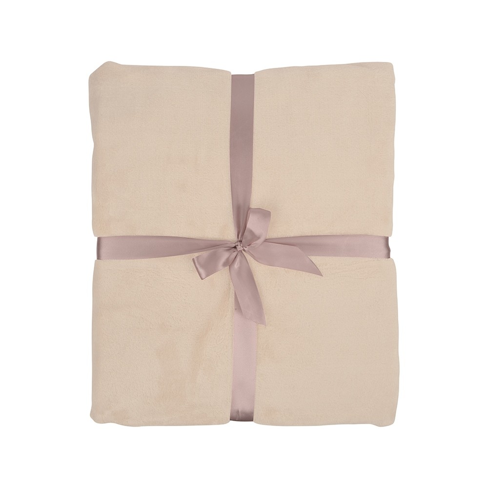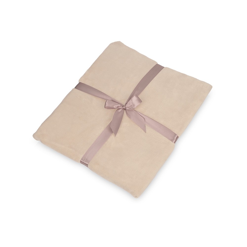 • Плед флисовый Natty из переработанного пластика, бежевый с розовой лентой
