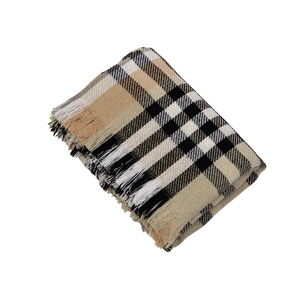 • Плед Liner с бахромой, 140*205 см., бежевый с черным