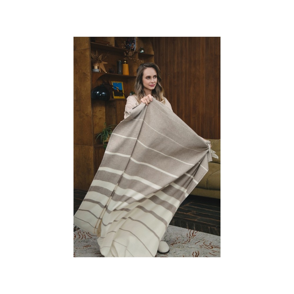 • Плед украшен бахромой, лаконичный дизайн органично впишется в интерьер и станет стильным украшением вашего дома. Постелите плед на диван или на кровать, возьмите с собой на дачу или используйте плед-покрывало в кресле-качалке.