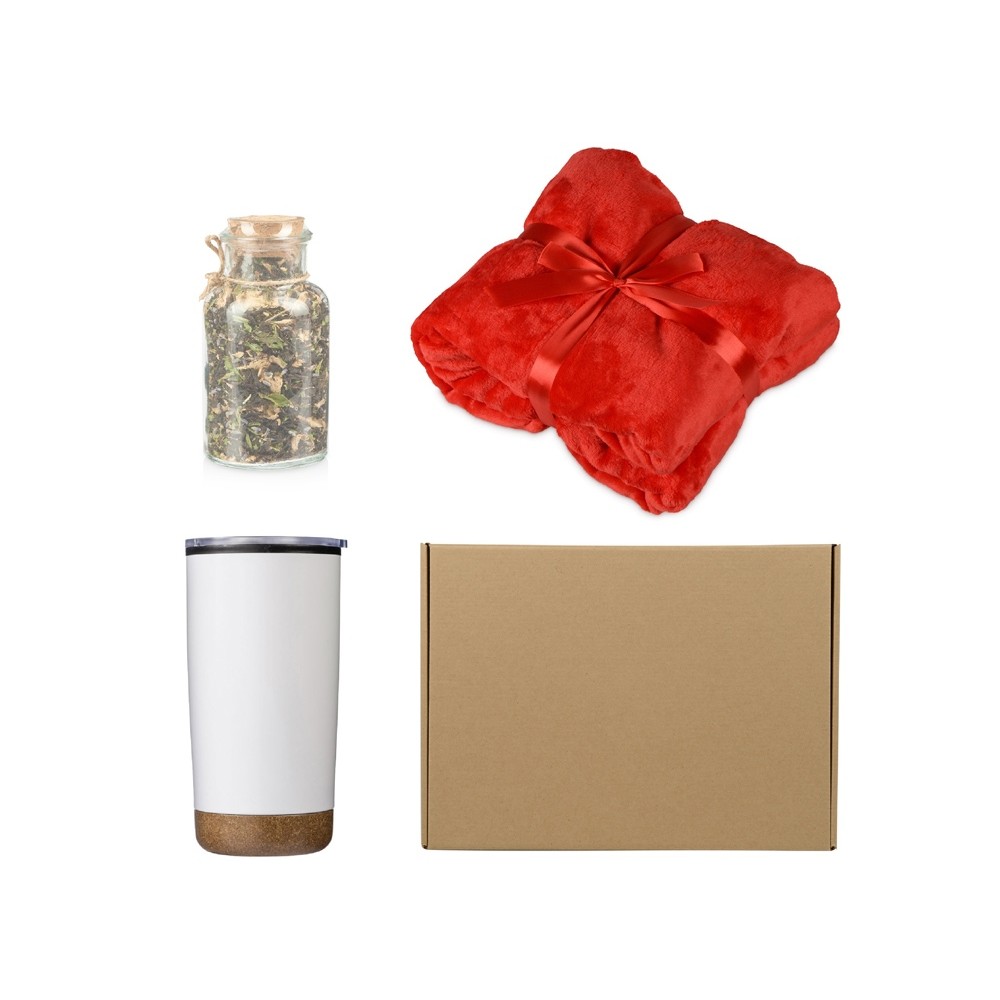 • Подарочный набор с пледом, термокружкой и чаем, красный