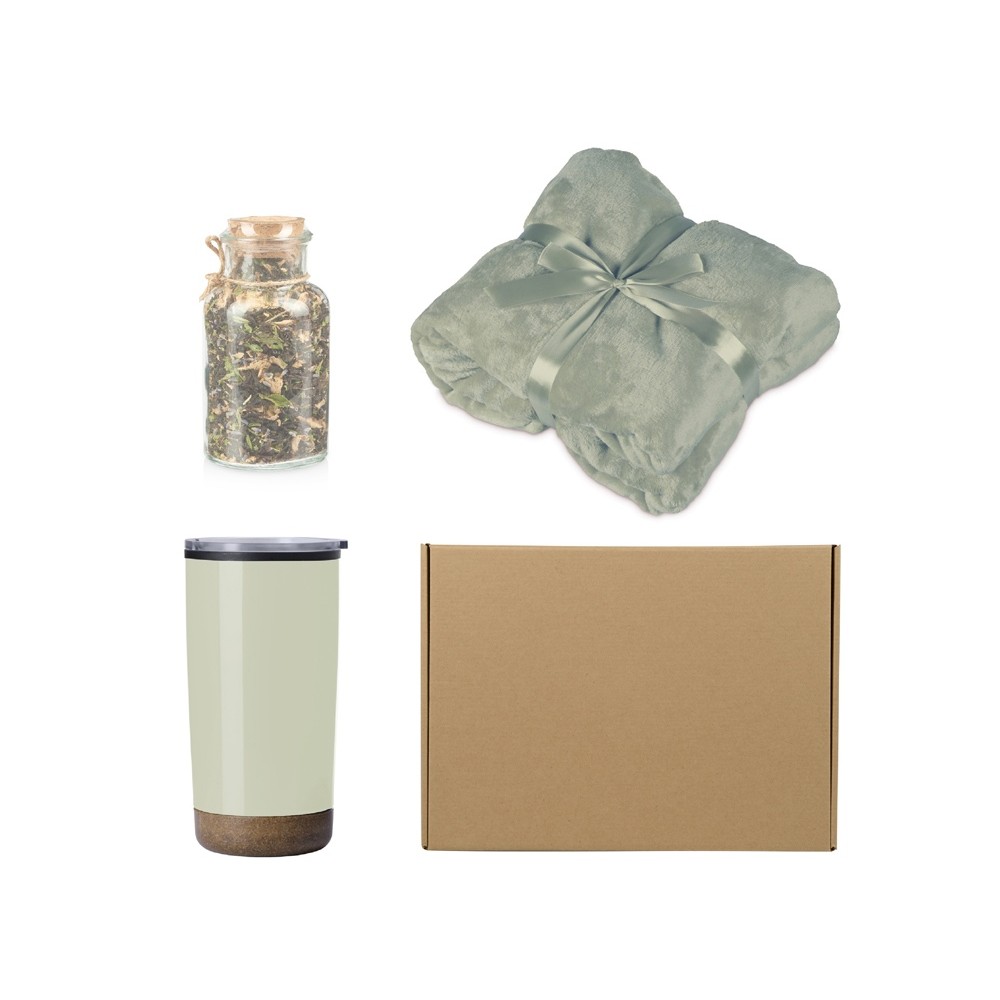 | Материал товара | плед - флис из 100% полиэстера, термокружка - нержавеющая сталь снаружи, полипропилен внутри, сокочай - стекло, пробковая крышка, коробка - картон |