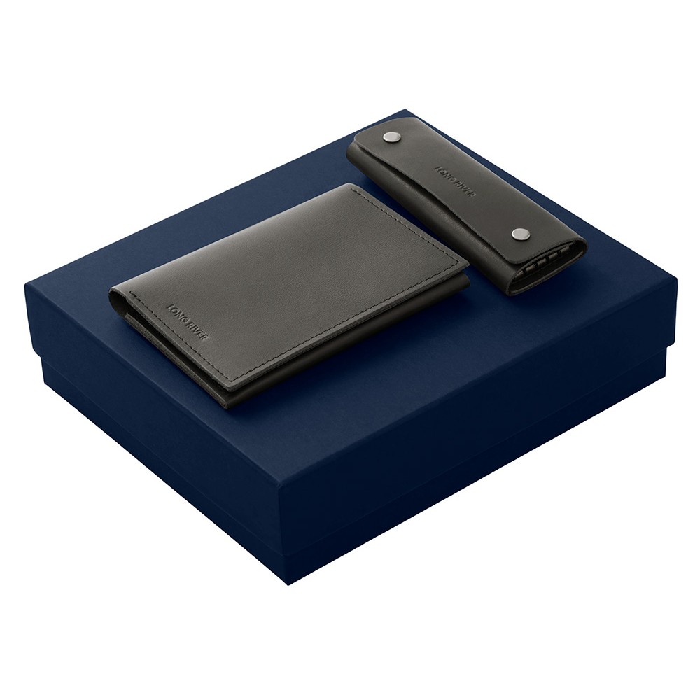 • Подарочный набор Long River: обложка для паспорта, ключница, синяя коробка
