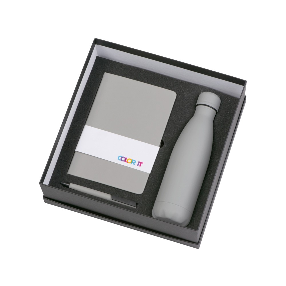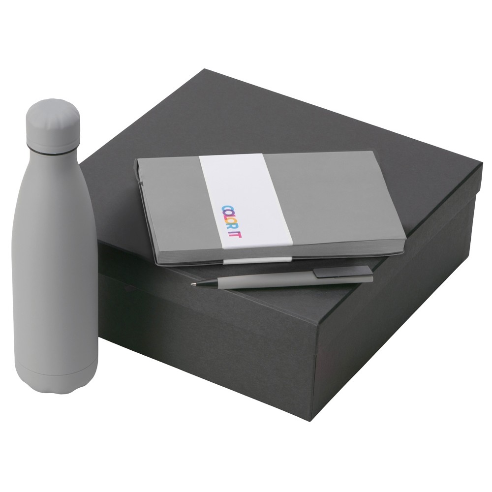 • Подарочный набор c блокнотом C1, ручкой и термобутылкой, серый