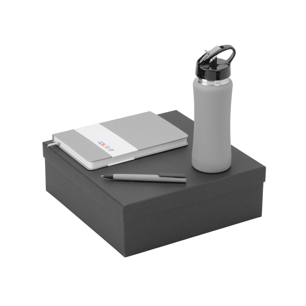 • Подарочный набор c блокнотом C2, ручкой и бутылкой, серый
