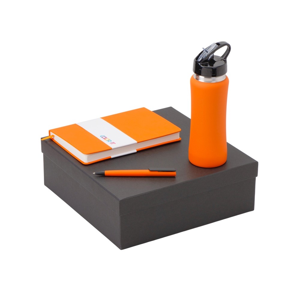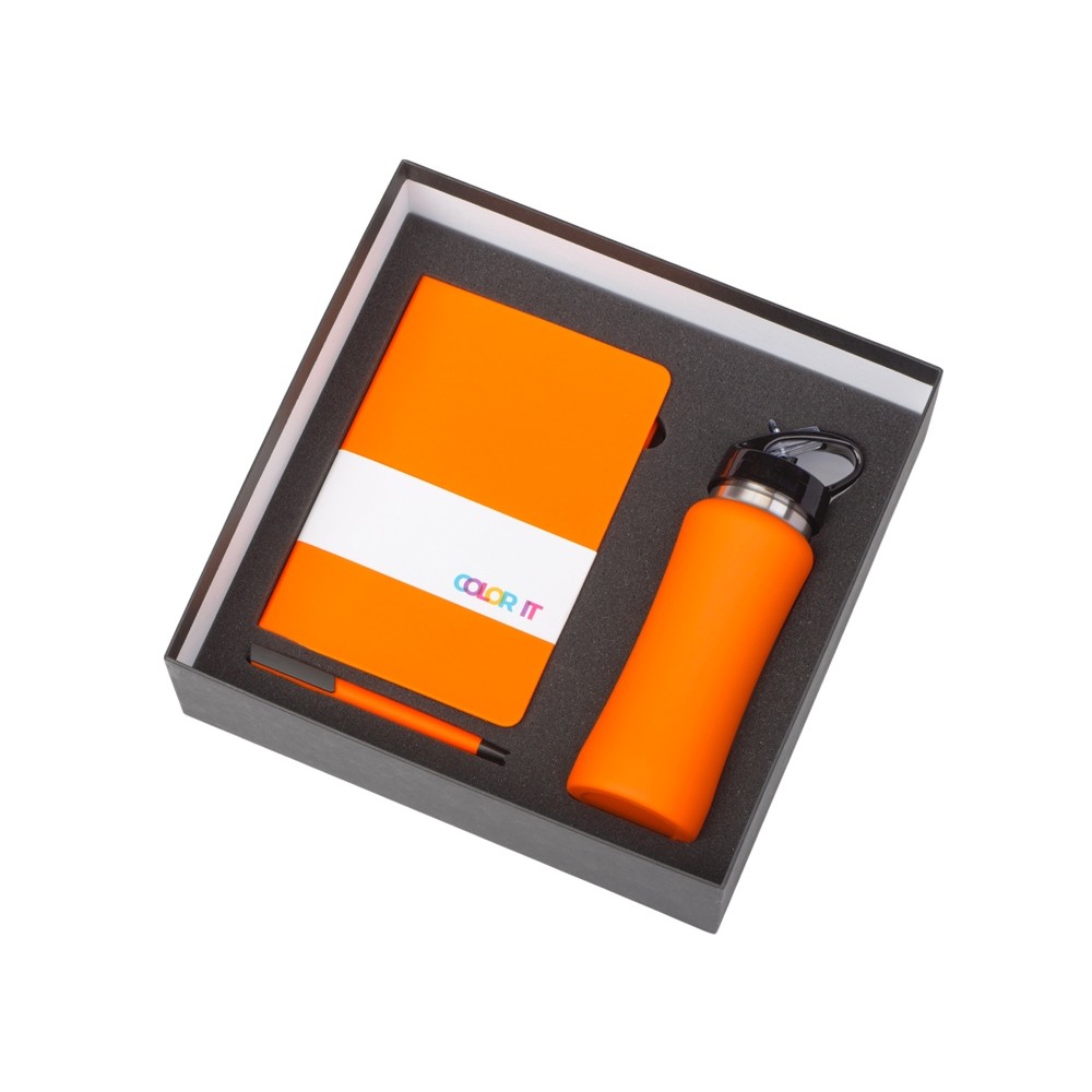 • Подарочный набор c блокнотом C3, ручкой и бутылкой, оранжевый