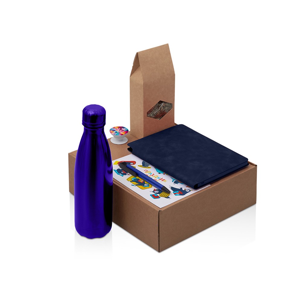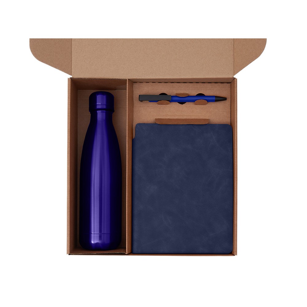 • Подарочный набор с термобутылкой, блокнотом, ручкой и чаем, синий