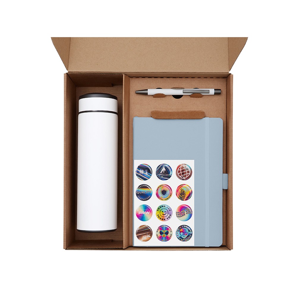 | Материал товара | термос - нержавеющая cталь с покрытием софт-тач, блокнот - искусственная кожа с покрытием софт-тач, ручка - металл с покрытием софт-тач, чай - крафт-пакет, стикеры - смола, держатель для телефона - пластик, коробка - картон |