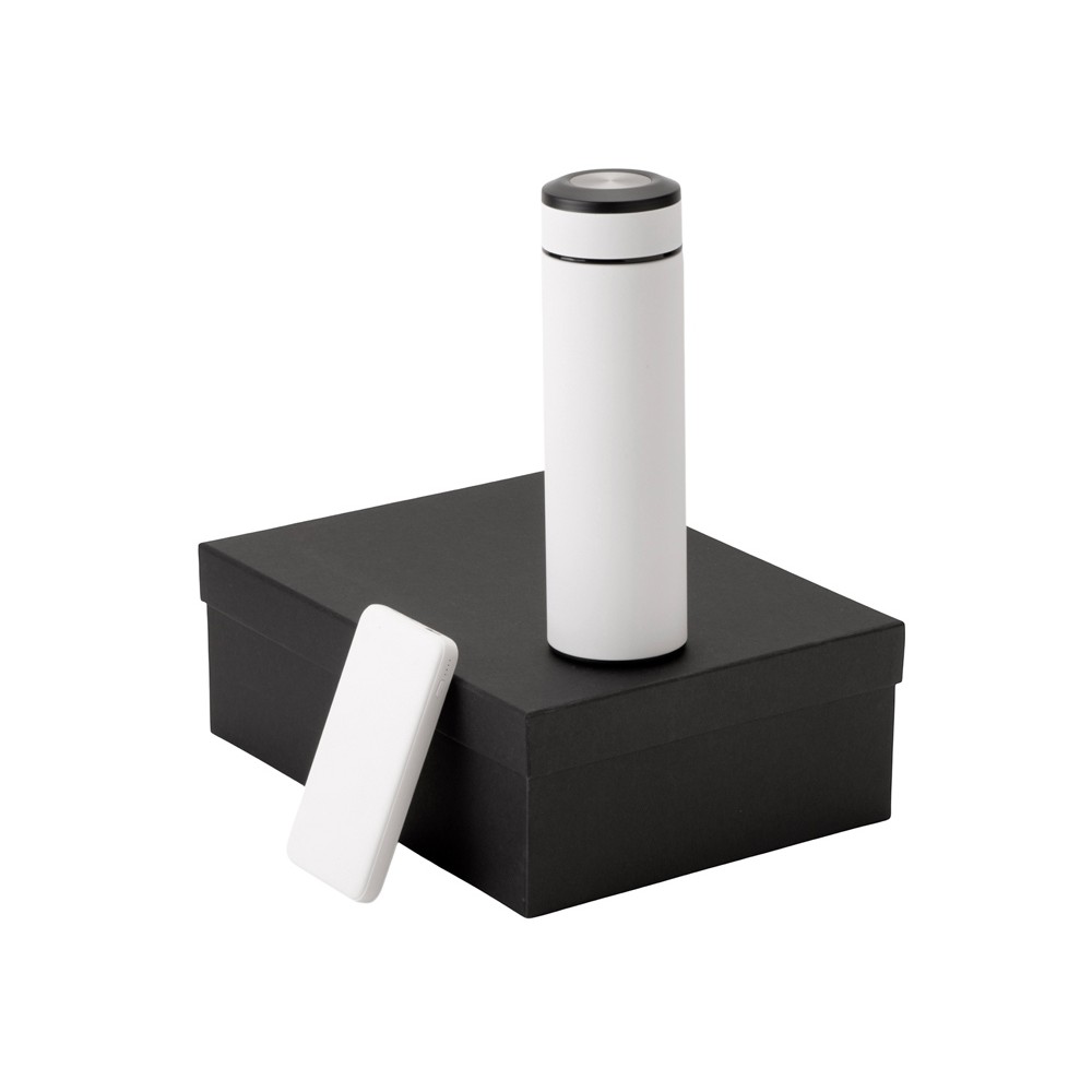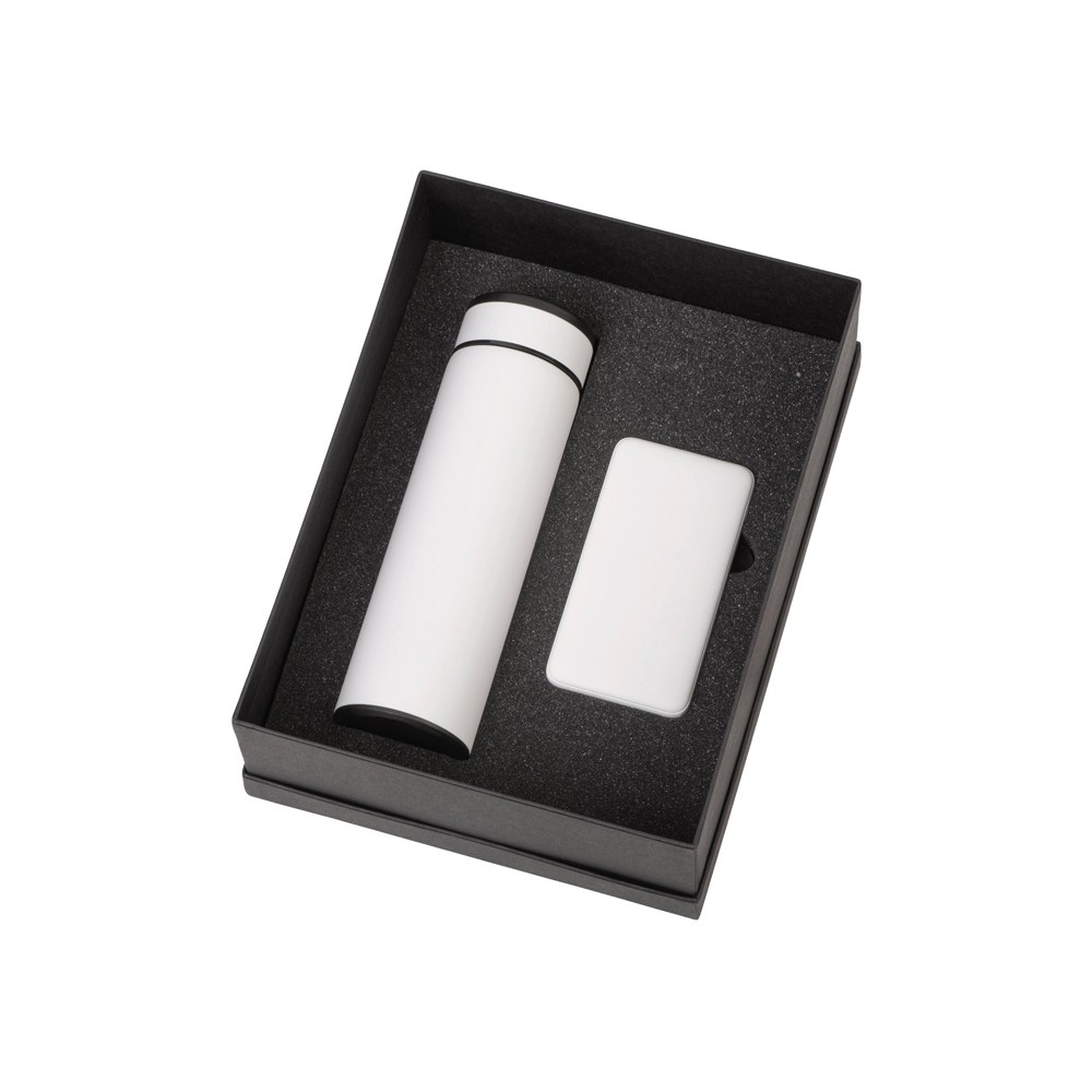 | Материал товара | термос - нержавеющая cталь с покрытием софт-тач, внешний аккумулятор- пластик с покрытием софт-тач |