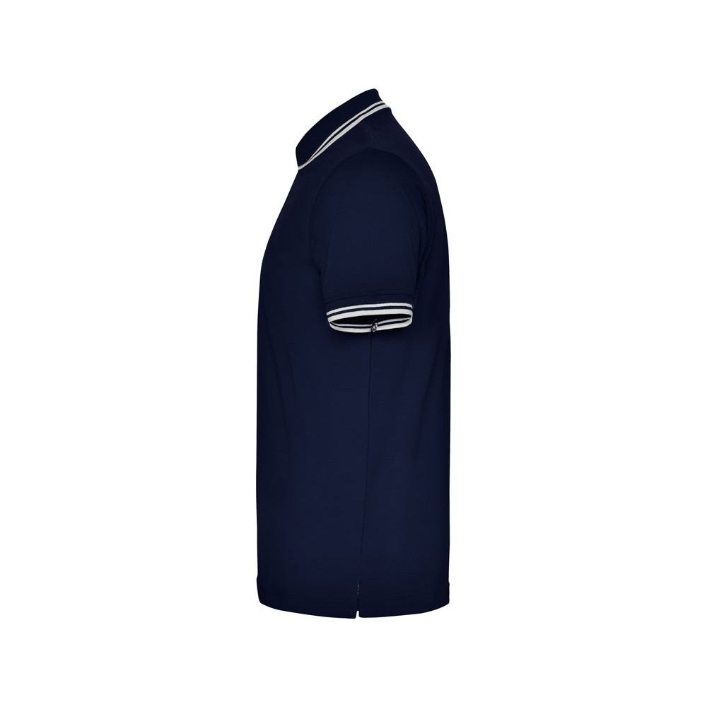 Поло с коротким рукавом. Воротник и манжеты из риба 1х1 с отделкой двойной контрастной плоской. Внутренняя планка контрастного цвета, застежка на 3 пуговицы. Разрезы в боковых швах. Премиальное плотное пике 230 гр.