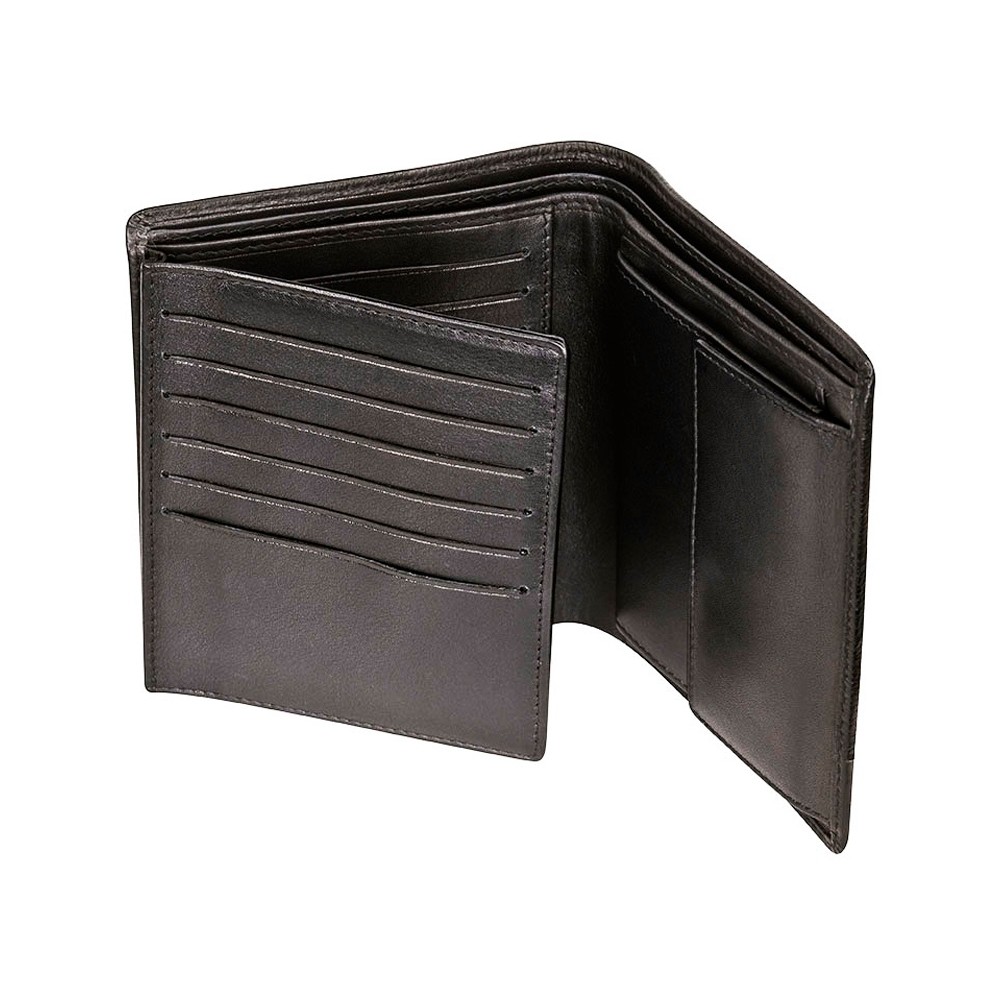 Функциональная организация: 2 отделения для банкнот, отделение для монет, 14 слотов для карт, 3 кармана