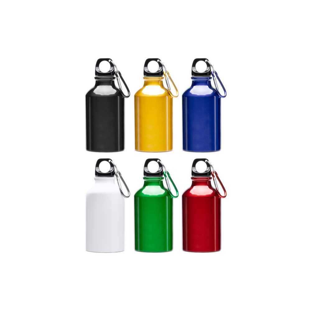 Алюминиевая бутылка с карабином. Черная крышка и карабин в тон бутылки. Емкость 330 мл. Поставляется в дизайнерской упаковке.