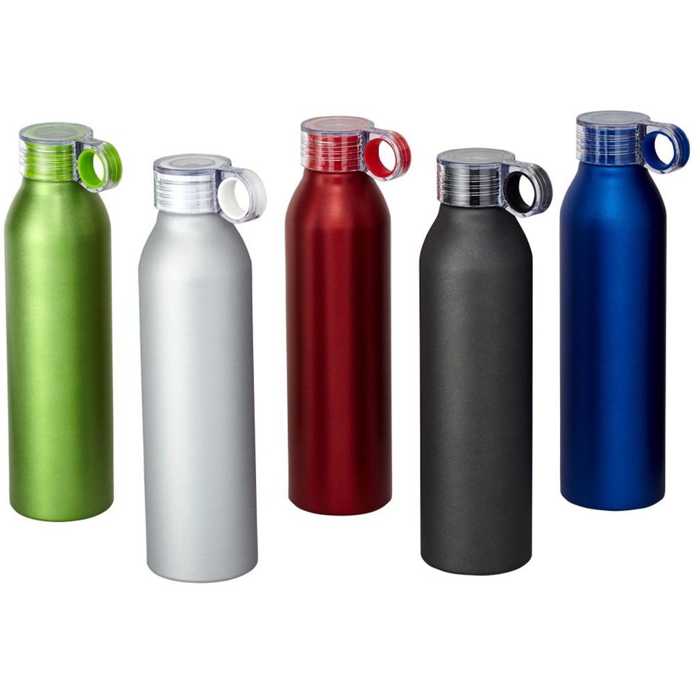 Спортивная алюминиевая бутылка Grom. Одинарные стенки. Откручивающаяся крышка с защитой от протекания и цветным акцентом. Удобная в пути. Объем 650 мл. Алюминий.