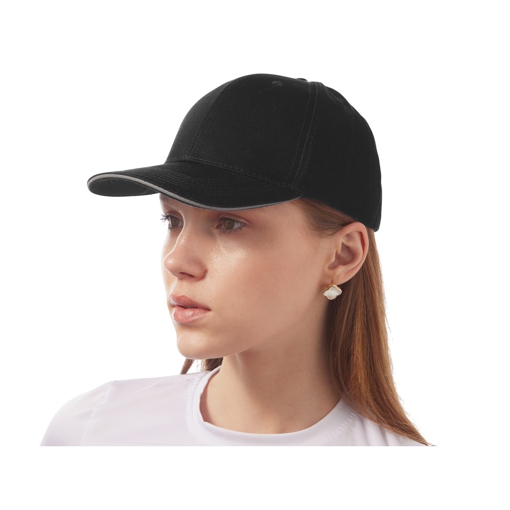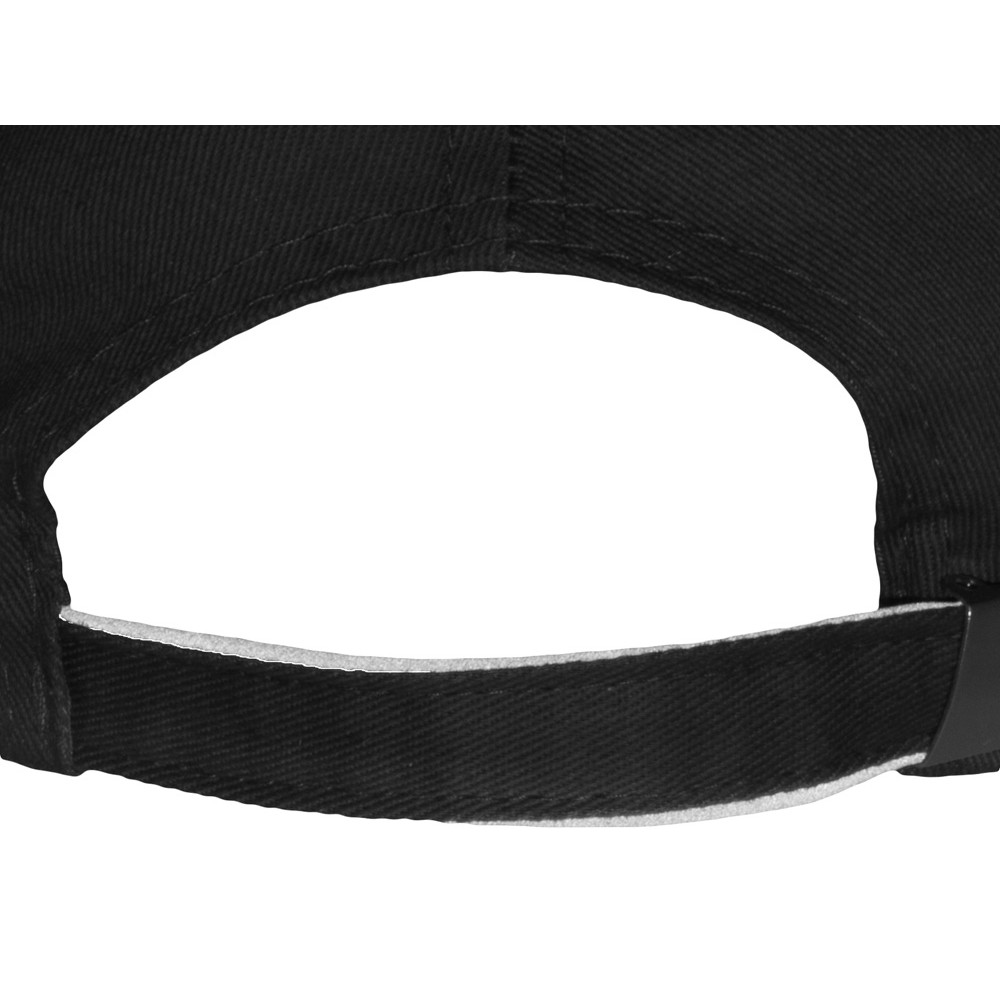 Шестиклинная бейсболка со светоотражающим кантом по козырьку и заднему хлястику - отличный вариант для занятий спортом в вечернее время. Объем регулируется металлической застежкой.