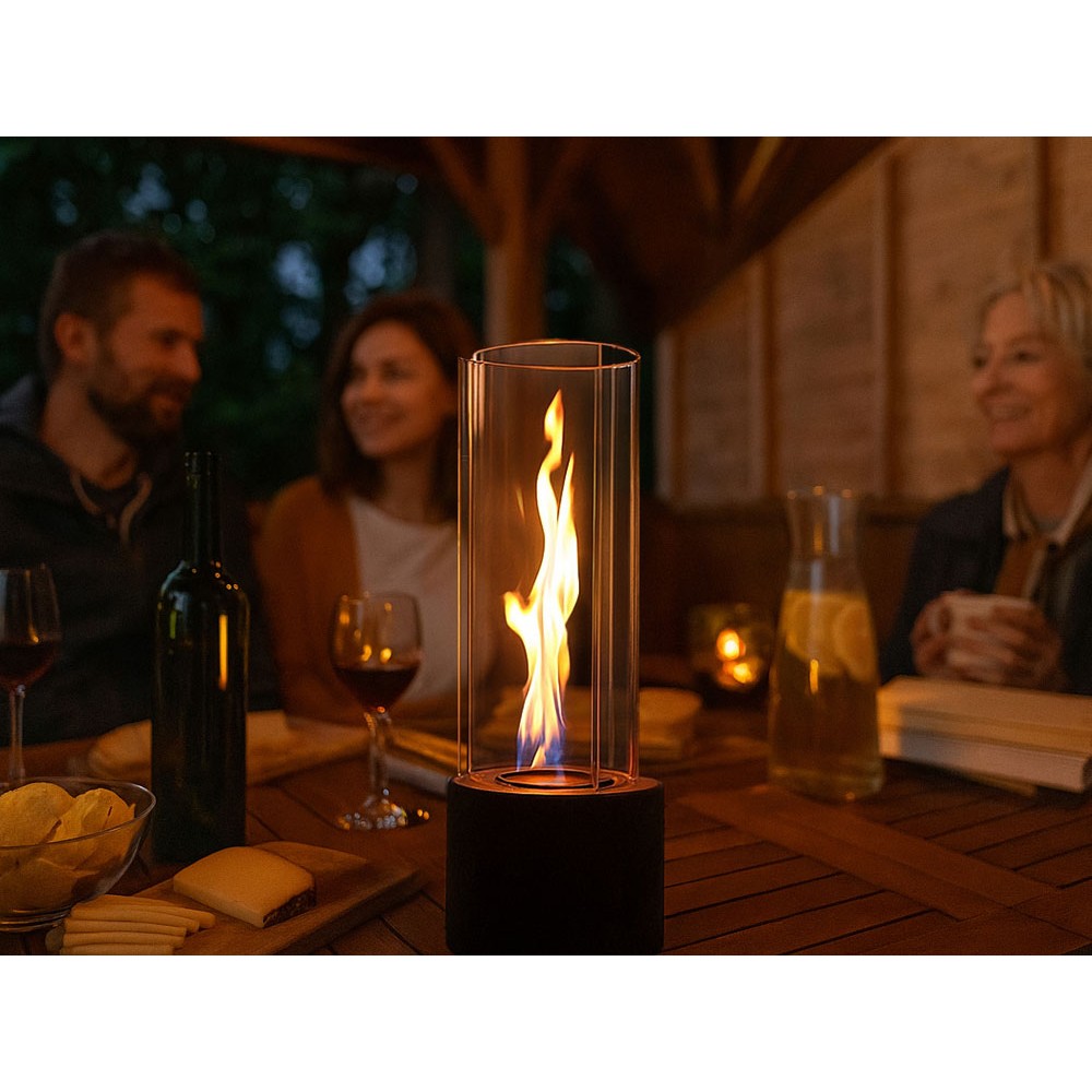 Биокамин "Dance of flame" — это не просто источник живого огня, а настоящий декоративный перформанс. Его главная особенность — тройная конструкция стеклянных панелей. Они расположены так, что между ними свободно гуляет воздух, создавая внутри завораживающий эффект: пламя не просто горит — оно кружится, словно танцует вальс.