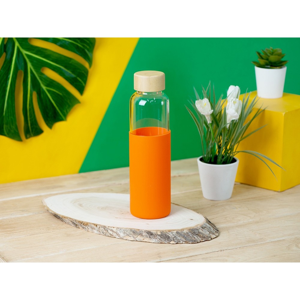 Бутылка для воды стеклянная "Refine", в чехле, 550 мл, оранжевый