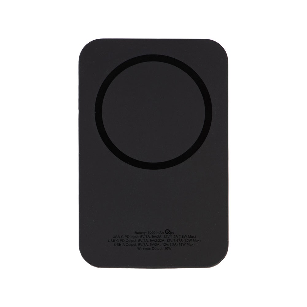 Технические характеристики Магнитный беспроводной внешний аккумулятор "MagnetIQ", 5000 mah, 10 W, черный (Р)