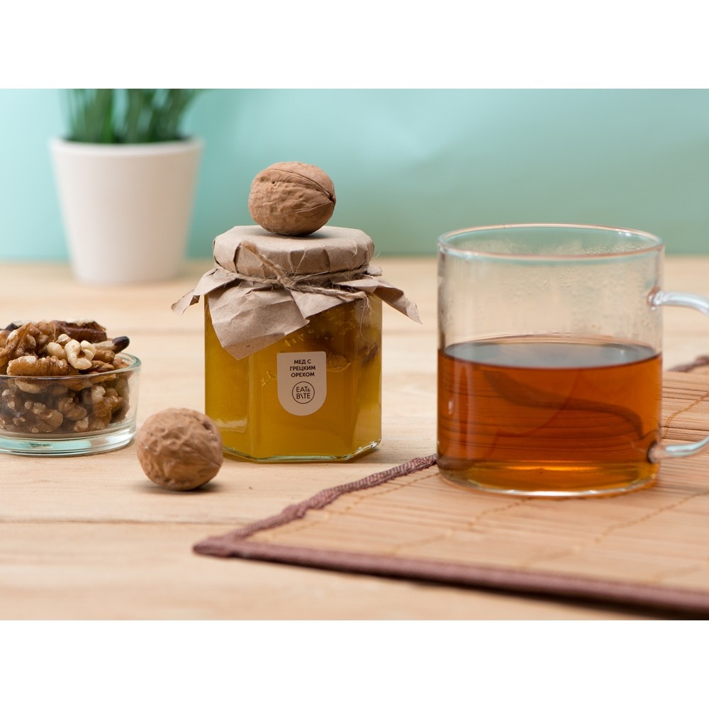 Мед и орехи прекрасно сочетаются друг с другом, образуя оригинальный и запоминающийся вкус. Медовый десерт идеально подойдет для чаепития, поэтому подобный подарок можно также дополнить чаем.